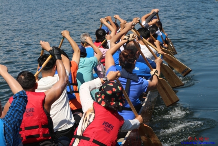 维多利亚龙舟节成立22年来的第一只当地华人船队,维龙队喝彩。
