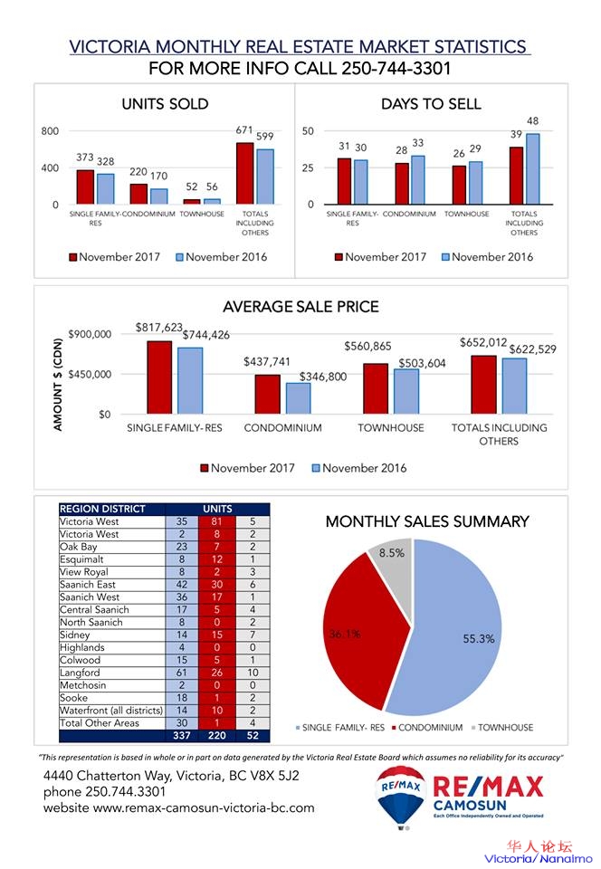A total of 671 properties sold in the Victoria Real Estate Board region this November, 12 per cent more than the 599 properties sold in November last year.