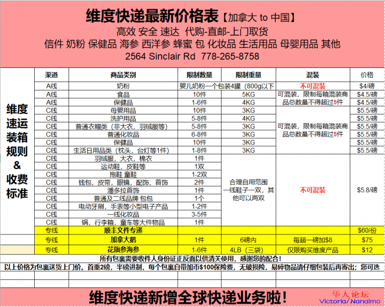 請問有人知道從Canada post寄一罐680g奶粉到中國郵費是多少嗎?