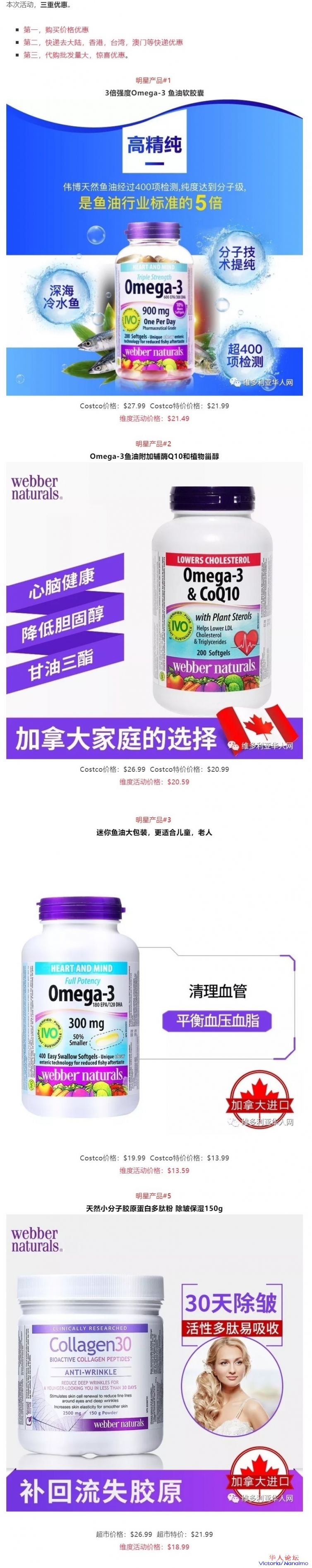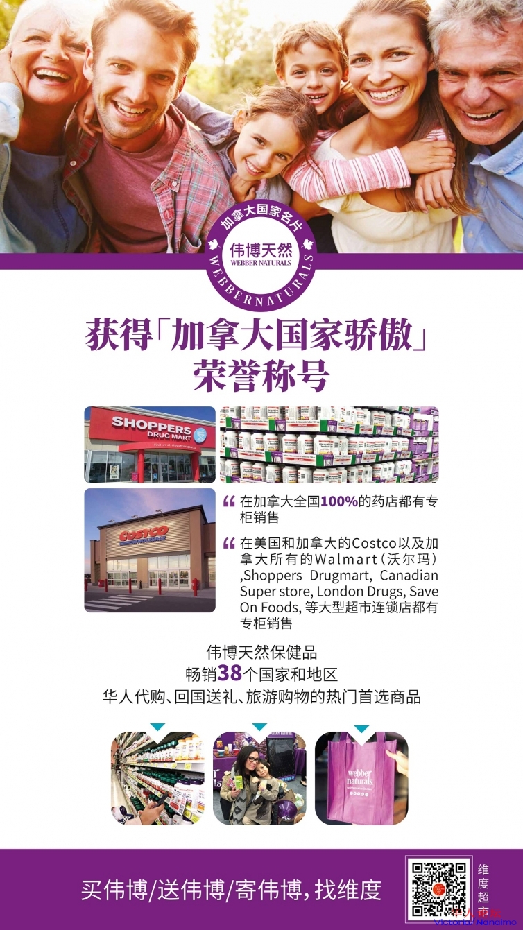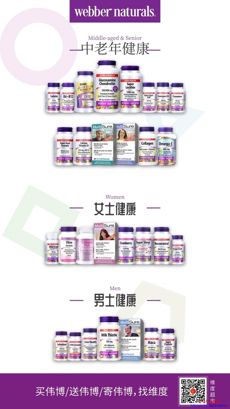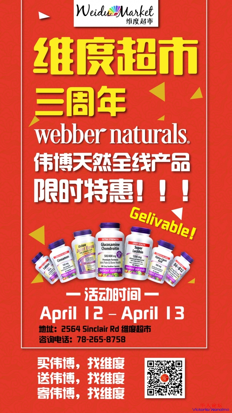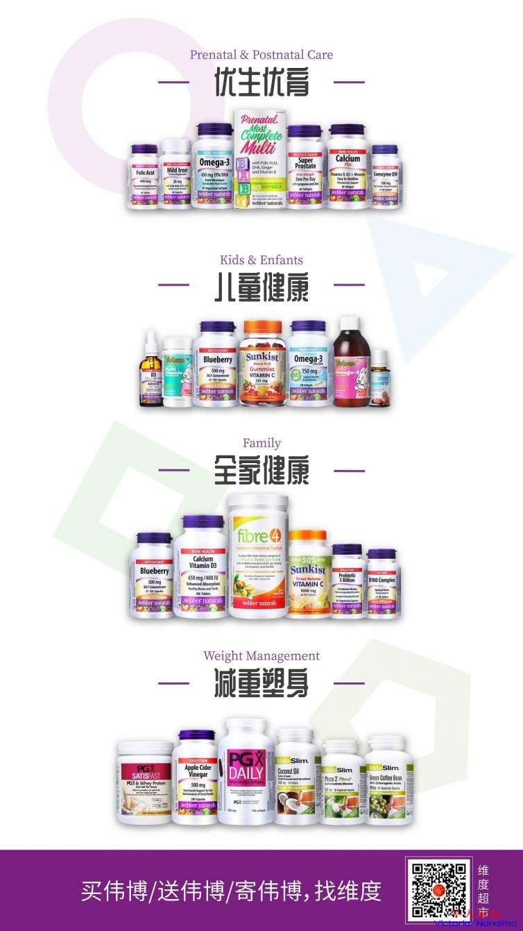 三周年临近,加拿大第一保健品品牌,Webber Naturals伟博天然团队,维度的战略合作伙伴,也将带着伟博全系列产品来到维度超市,同时最重要的是,这次活动,将以史上最大优惠力度,把最好的产品推荐给大家。但是时间只有两天,记住只要两天。