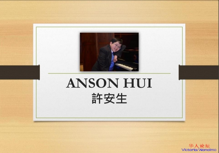 5 f, g% T2 T! t( Q' X$ ]在音乐会上另一位演奏者是来自维多利亚的Kevin Zhang,Kevin Zhang目前在St. Michael's University School读书,跟Ya Lin Hung学琴,受到许安生音乐梦想和成绩的鼓舞,愿意参与这次慈善表演。