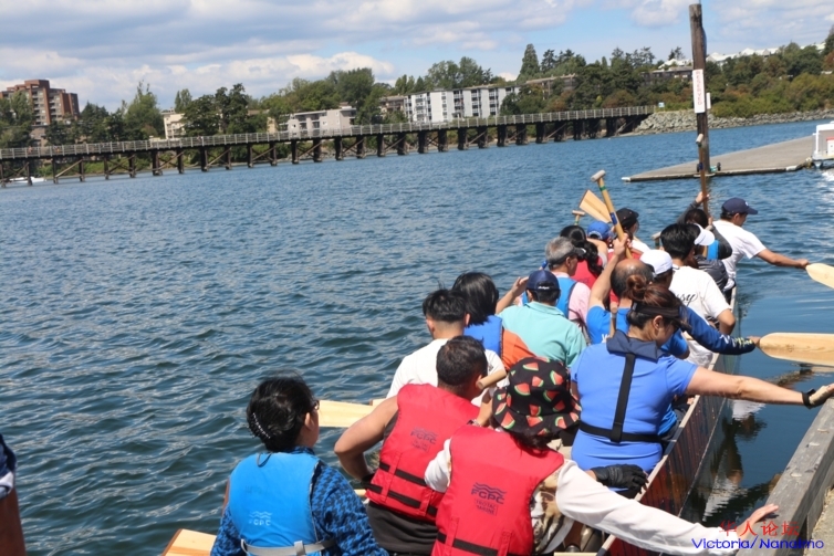 维多利亚龙舟节成立22年来的第一只当地华人船队,维龙队喝彩。