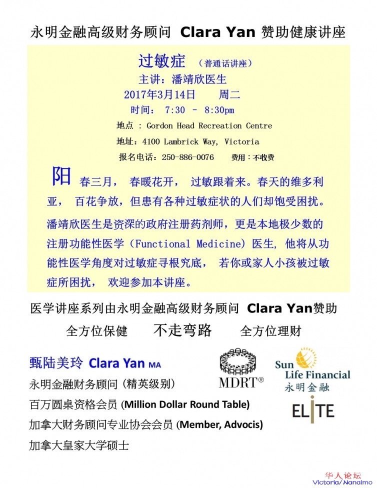 永明金融高级财务顾问 Clara Yan 赞助健康讲座-三月主题:过敏症