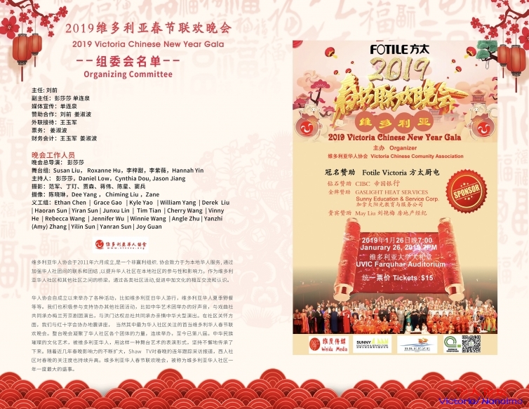 她是维多利亚华人最大的华人欢聚,是我们维多利亚全体华人的年夜饭,是凝聚我们维多利亚华人社团、艺术家、文艺爱好者的一场视听盛宴。  M5 z; f4 A. D, }7 o5 T2 f  C+ K