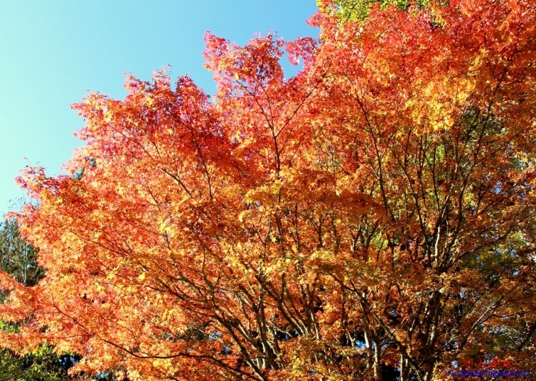 秋色中的片片红叶,片片红叶晕染的布查花园