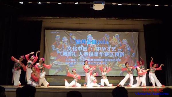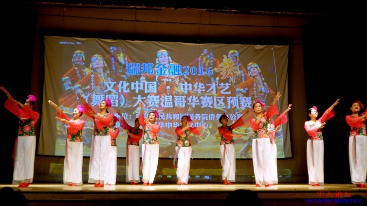 ( l: b! h7 Y0 }8 R阳光健身俱乐部做为维多利亚的唯一业余团体被推荐参加了这次大赛,同时也是这次参加比赛的唯一一家业余团体。在不到20天的紧张排练之后,我们12名参赛选手以饱满的热情为这次大赛奉上了群舞《桃花源》,并得到评委们的好评,获得此次比赛的优秀表演奖,同时也让我们看到了温哥华地区的专业舞蹈学校的精彩表演。