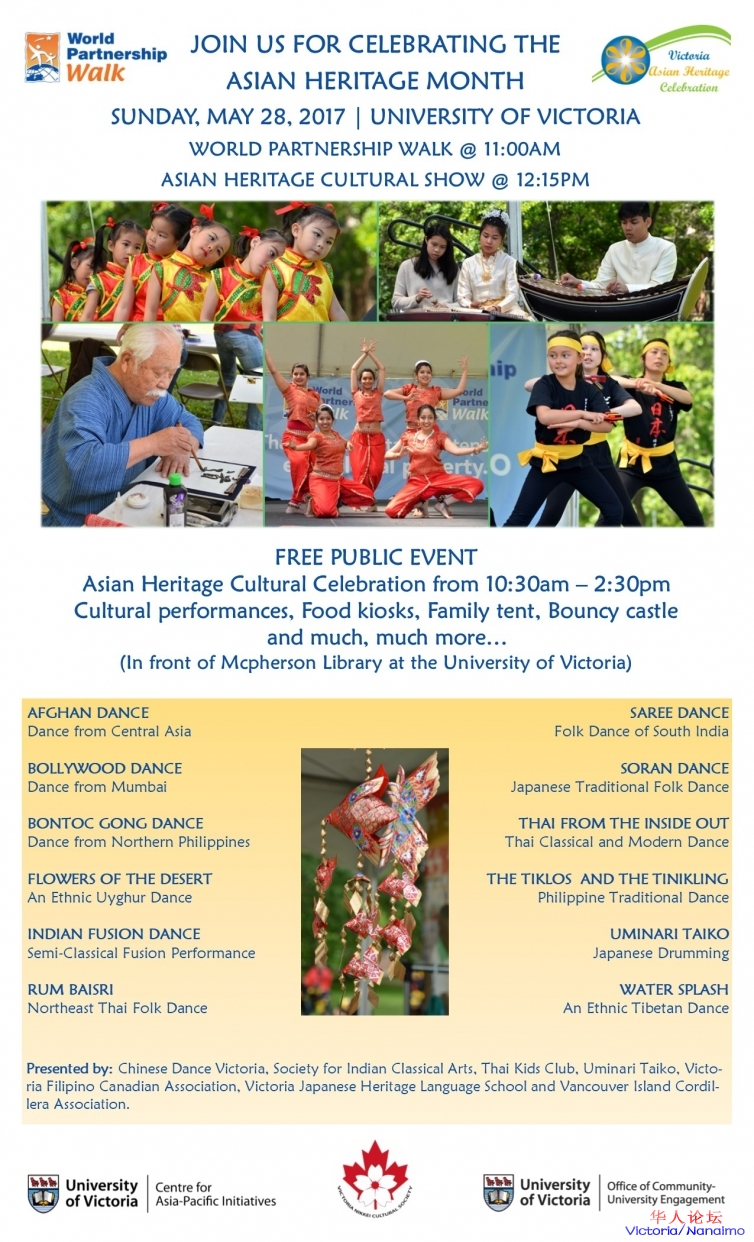 活动:庆祝加拿大亚洲文化月(五月)民族歌舞会, 暨世界联合行走(为世界贫困募捐行走)