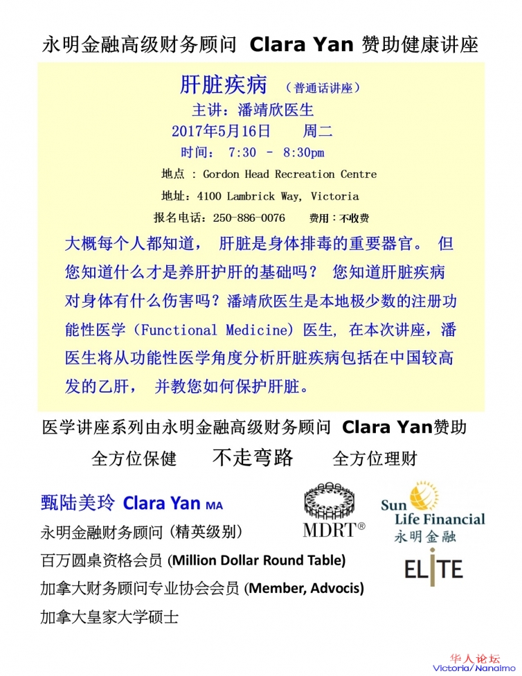 » 永明金融高级财务顾问 Clara Yan 赞助健康讲座-五月主题:肝脏疾病(包括乙肝)