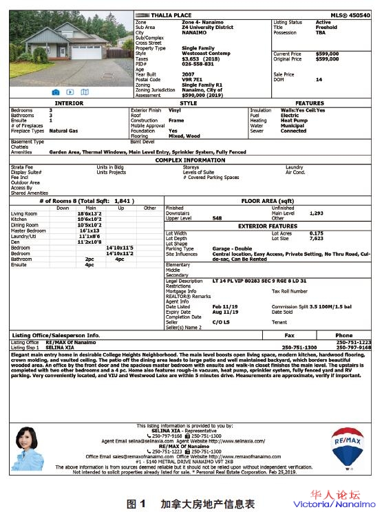 加拿大房地产信息表(以下简称信息表)是某处加拿大房产的信息汇总,该表格通常只能从房地产经纪人手中获得,并且有客户版和完整版两种形式,图1展示的是完整版。