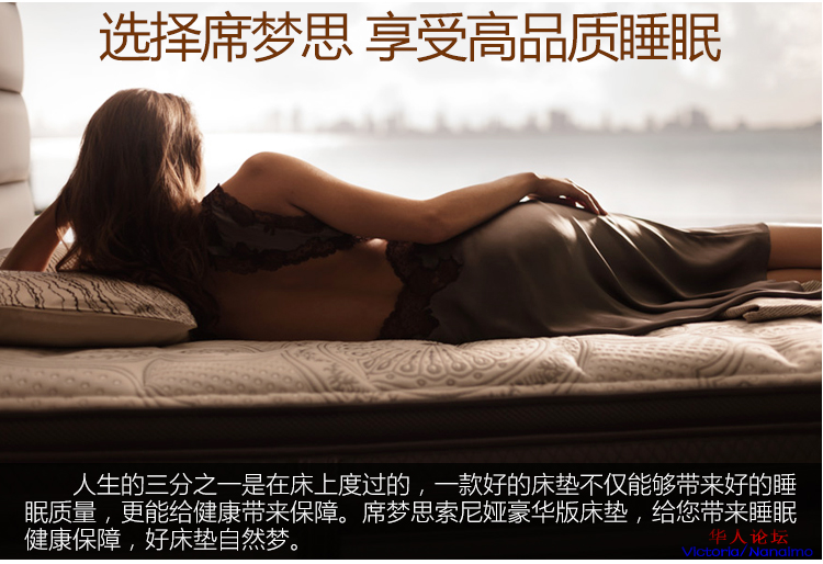 选择席梦思,享受高级品质睡眠。人类的三分之一的时间将会花费在睡眠上,每天八小时的睡眠,保证您的工作与学习精神充沛。爱上一份好的席梦思,也就爱上了睡眠,更热爱生活。