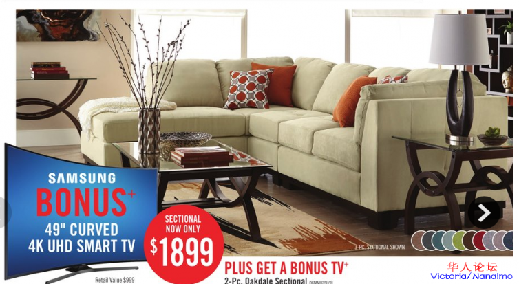 即日起购买限定沙发,赠送价值999三星曲屏4K UHD TV 。