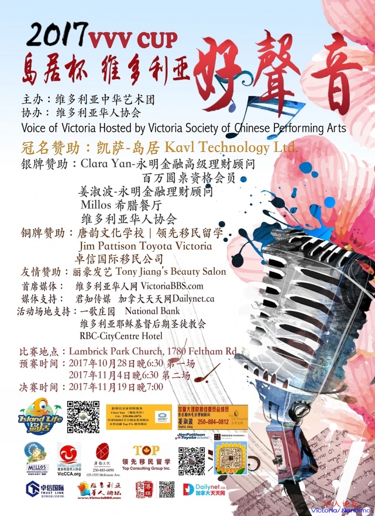 / g8 \: a/ f7 ?1 h第一场预赛将于本月28日(周六)晚上6:30拉开大幕,欢迎大家前来观看!地点在Lambrick Church。预赛地点在教堂的Cafe厅,到了你一定会找到的,你就往热闹的地方去。决赛会移师到教堂的Auditorium 。