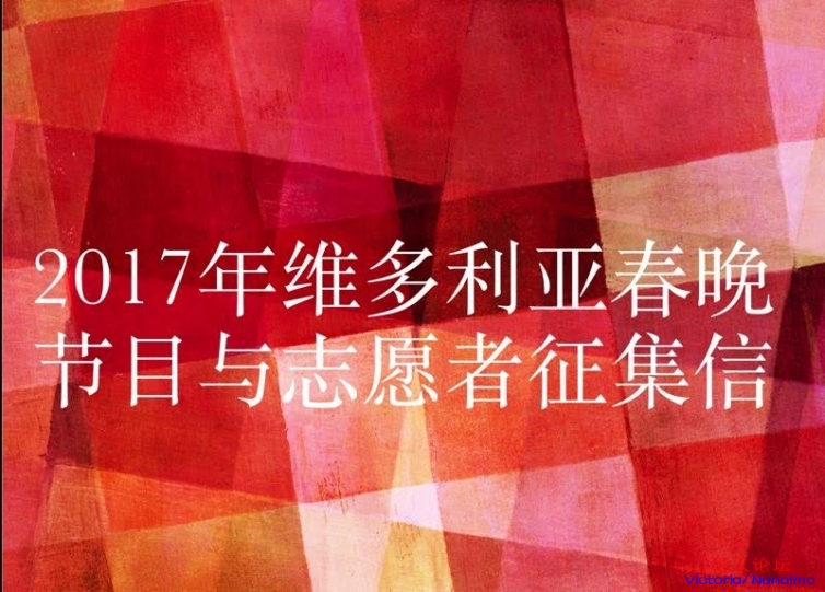 维多利亚华人春节联欢晚会,由维多利亚华人协会主办,维多利亚华人学生学者联谊会协办。是维多利亚华人社区每年的一大盛事。! l( S* c* B+ Q4 v