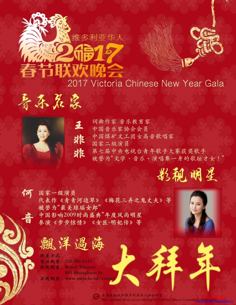 / U6 o% `+ @- \! r: F/ e$ y$ Xhttp://www.rmts.bc.ca/events/chinese-new-year-gala-2017-royal-theatre - 电话购买:250-386-6121 或者 1-888-717-6121