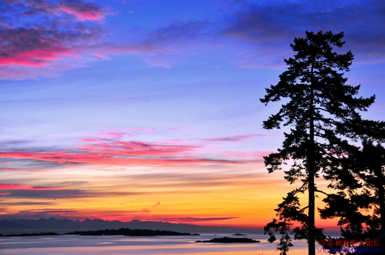 色彩不错,树的曝光可以不必太在意,整得亮了反而与自然相悖,就拍成这种剪影也可以。